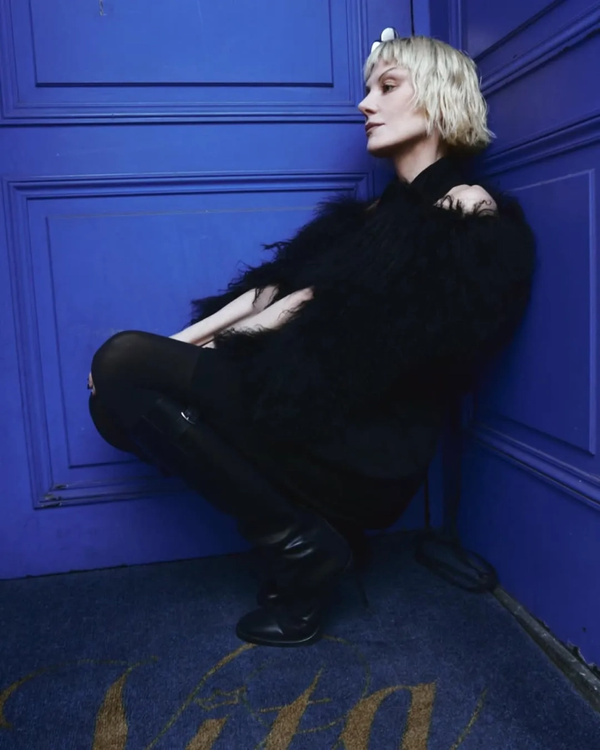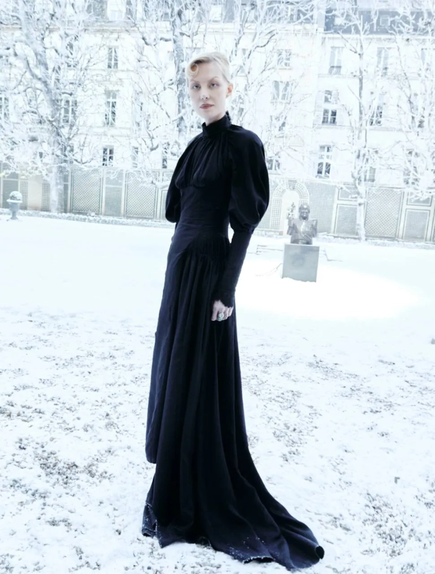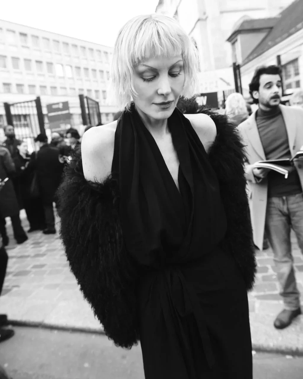 На шоу Ann Demeulemeester Литвинова пришла с каре и в чёрном платье с шубой, а на показ Jean Paul Gaultier нарядилась в винтажный плащ Paco Rabanne. На шоу Enfants Riches Déprimés, где ранее актриса выходила на подиум, она пришла в длинном чёрном платье.