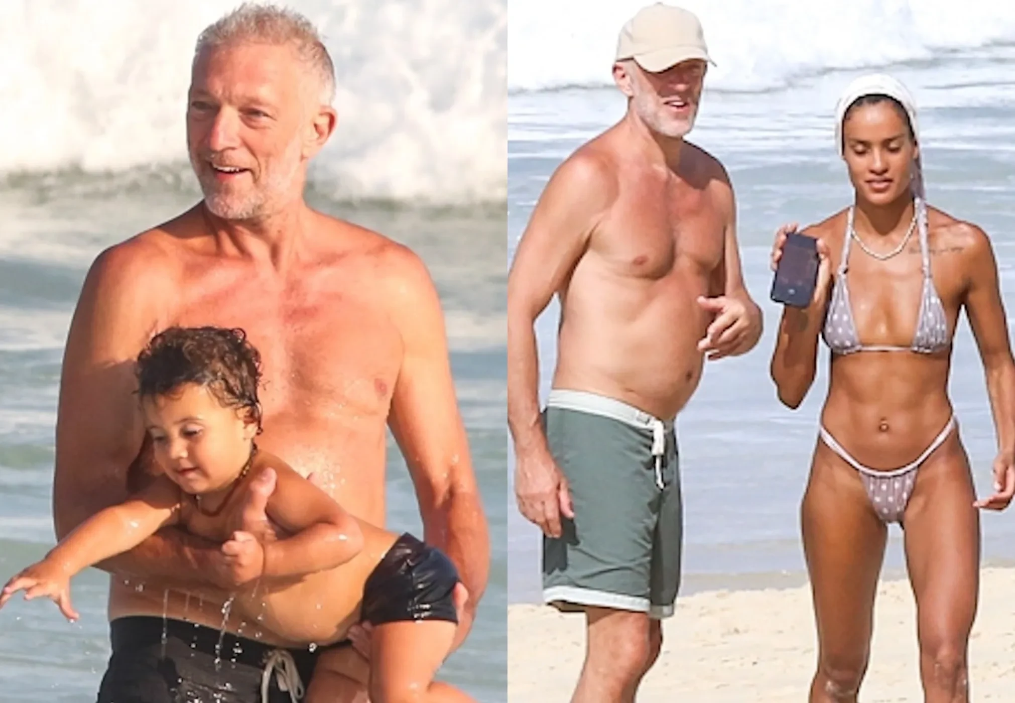 59-летний Венсан Кассель провёл время на берегу океана вместе с возлюбленной Нарой Баптистой и их сыном Каэтано. Семью засняли папарацци на пляже Арпоадор в Рио-де-Жанейро.