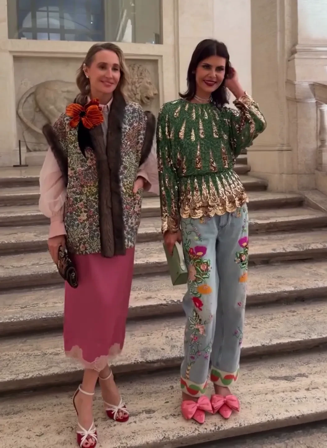 53-летняя Гвинет Пэлтроу пришла увидеть новую коллекцию авторства креативного директора Valentino Алессандро Микеле в зелёном мини-платье и кружевных колготках. 32-летняя невеста Криштиану Роналду Джорджина Родригес позировала в чёрном облегающем платье и бриллиантах, а 40-летняя поп-звезда Лили Аллен пришла в "голом" платье и кожаной куртке.