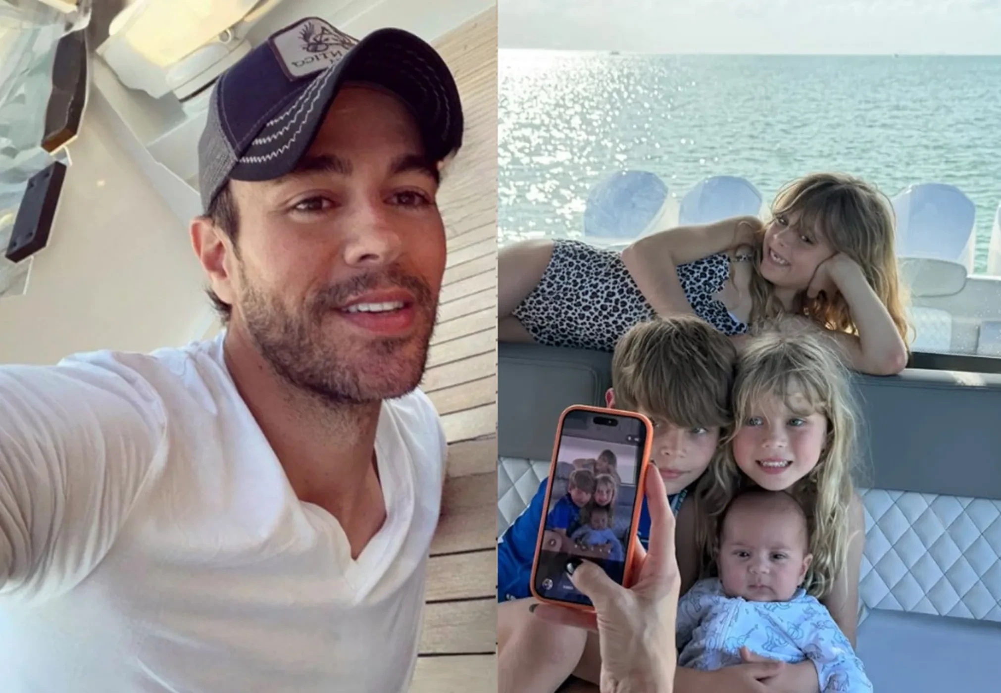 50-летний певец заснял их с Курниковой детей на борту яхты во время семейного отдыха. В углу кадра видно и саму Анну с телефоном в руках, также занятую съёмкой. "Семья", — подписал Энрике снимок.