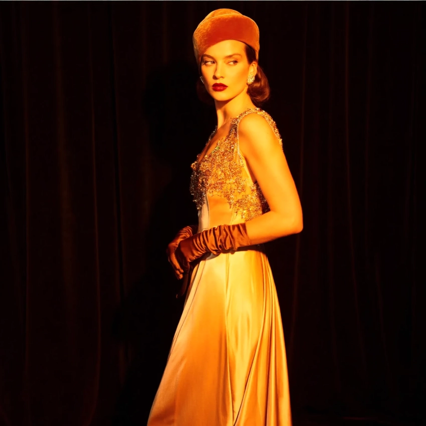 Платье-комбинация, меховая накидка, ретро-укладка и алые губы — костюм для тех, кто хочет блистать. Атмосфера нуарных фильмов превращает вас в звезду старого Голливуда.