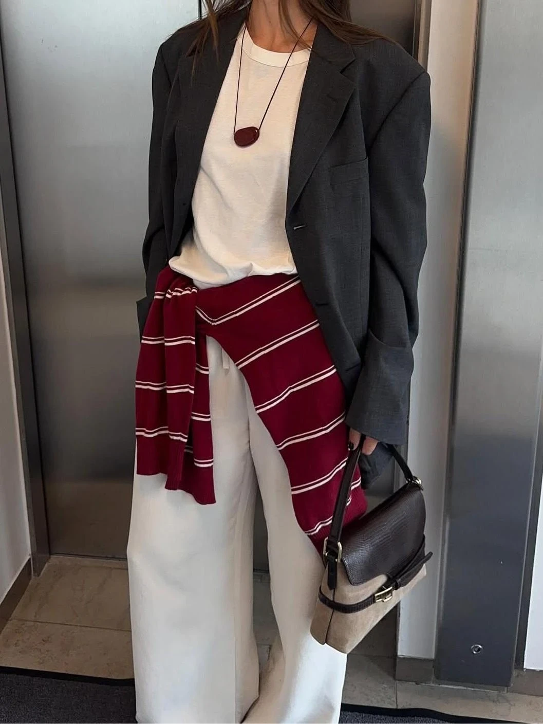 Одно из самых гармоничных зимних сочетаний — молочные оттенки с рыже-коричневой замшей.