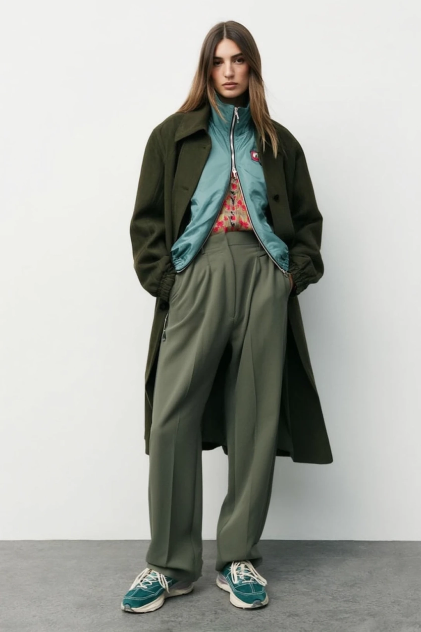 Одно из самых заметных возвращений: такое пальто формирует выразительный силуэт и легко комбинируется с джинсами, трикотажем и лаконичной обувью. В 2026 году оно уже не просто винтажный акцент, а ключевой элемент образа.