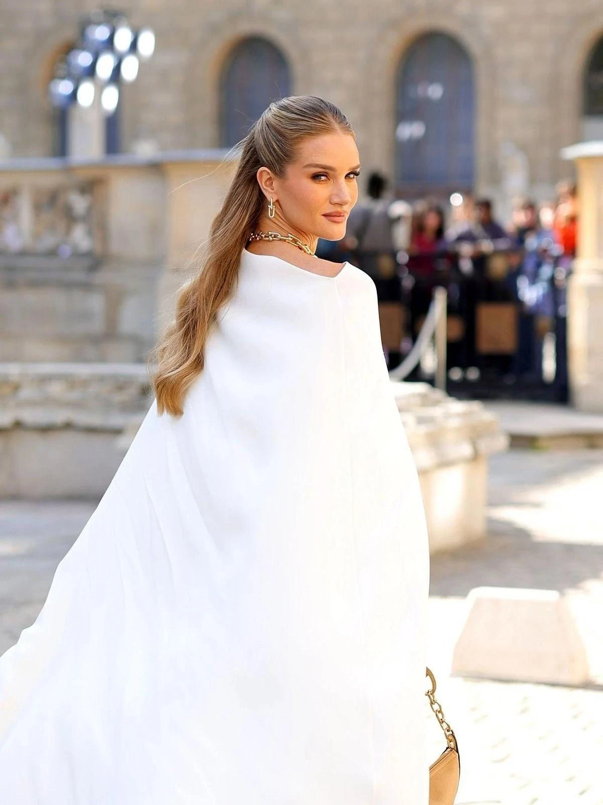 Для правильного эффекта важно оставить боковые зоны чистыми: верхний слой волос фиксируется сзади невидимками или мягкой заколкой, а основная длина остается свободной. Волосы движутся, но линия лица остается четкой.