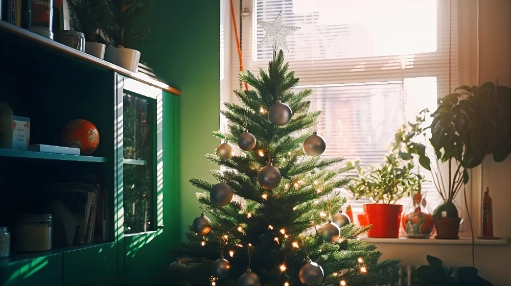 Первый шаг — разместить дерево в подходящем месте. Оно должно быть вдали от источников тепла, таких как батареи, камины или обогреватели. Если полностью избежать их нельзя, можно положить на батарею влажную ткань — это поможет уменьшить высыхание хвои.