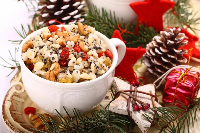 Главные ингредиенты голодной кутьи остаются неизменными: мед, мак и орехи. Продукты животного происхождения в этом варианте не используются. Важно помнить различие между праздничными днями: на Святой вечер (6 января) кутья готовится более богатой — с множеством добавок, а на Щедрый вечер (13 января) допускается использование масла, сгущенного молока и других калорийных ингредиентов.