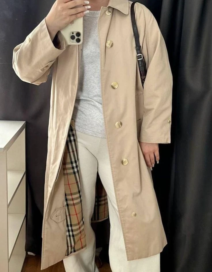 Антитренд: бежевые тренчи с яркой, узнаваемой клеткой внутри — тот самый элемент, который сразу выдает масс-маркет прошлых сезонов.