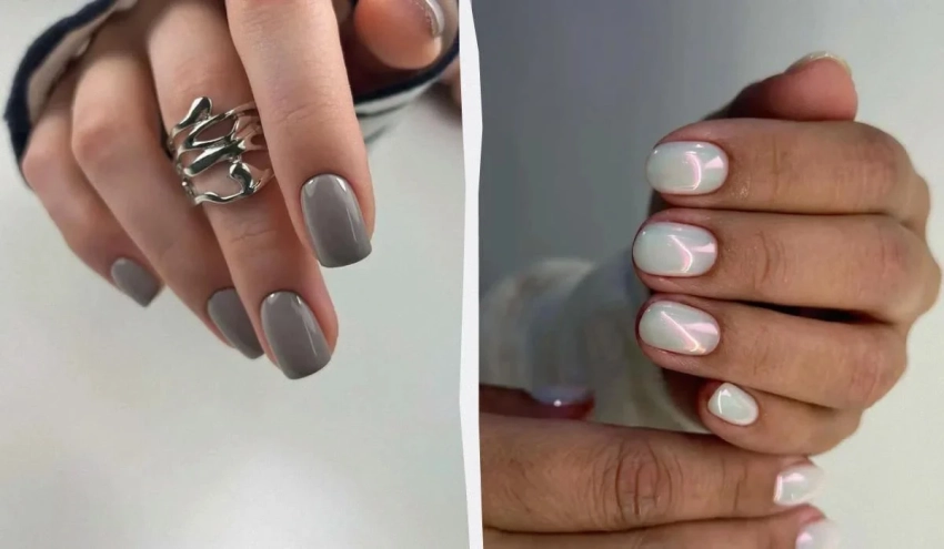 Холодный серый с лёгким голубым подтоном — один из главных нейтралов сезона. Он выглядит дорого, сдержанно и отлично сочетается как с минималистичным маникюром, так и с металлическими деталями.