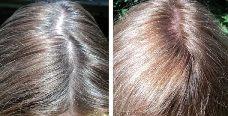 - Нанесите настой на волосы, уделяя внимание зонам с сединой.