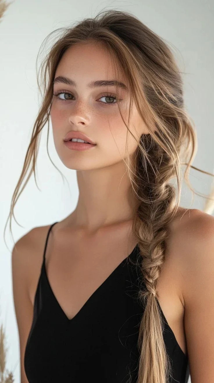 Строгая и собранная укладка, которая держится весь день. Ее можно плести по центру или на бок — в любом случае получится элегантно.