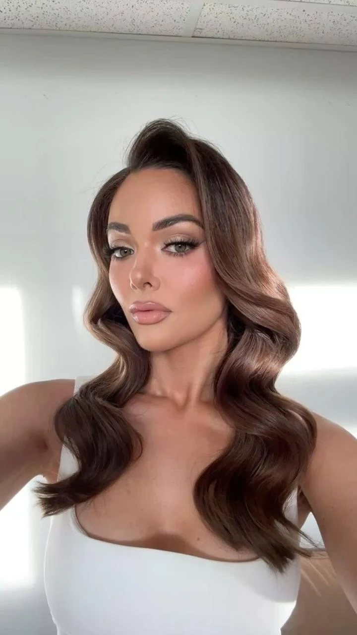 Крупные локоны добавят роскоши даже к деловому костюму. Для офиса можно закрепить передние пряди, а вечером просто снять невидимки.