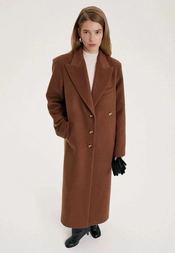 Если цель — запоминающийся образ, выбирай оверсайз пальто в пол. Длина до щиколоток, широкие плечи и рукава создают эффект монументальности.