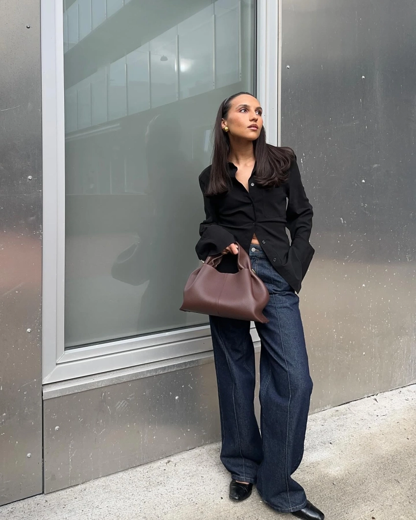 Джинсы — вечная классика. Но в сезоне 2025 в центре внимания — темные оттенки: глубокий индиго и насыщенный черный. Такой деним выглядит сдержанно, но стильно, легко переходя от повседневного к деловому стилю.