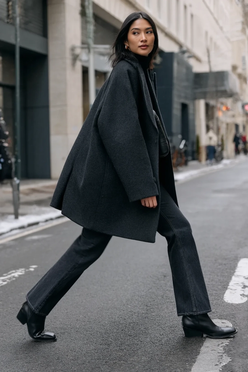 Чтобы не потеряться в объемах, важно сохранить баланс — верх должен быть более структурированным: выбирайте укороченные куртки, жакеты или кардиганы.