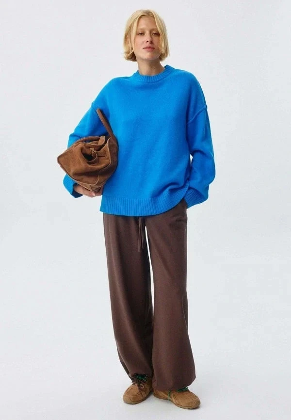 Особенно красиво это работает с насыщенными тонами — индиго, кобальт, сапфировый. Такой дуэт уместен и в офисе, и в повседневных выходных образах.