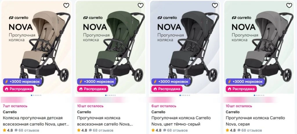 Ozon помогает быстро отфильтровать линейки Carrello по весу, колёсам и комплектации. Сформируйте критерии под ваш район, проверьте складку и посадку ребёнка, не гонитесь за самым лёгким шасси при зимних прогулках.