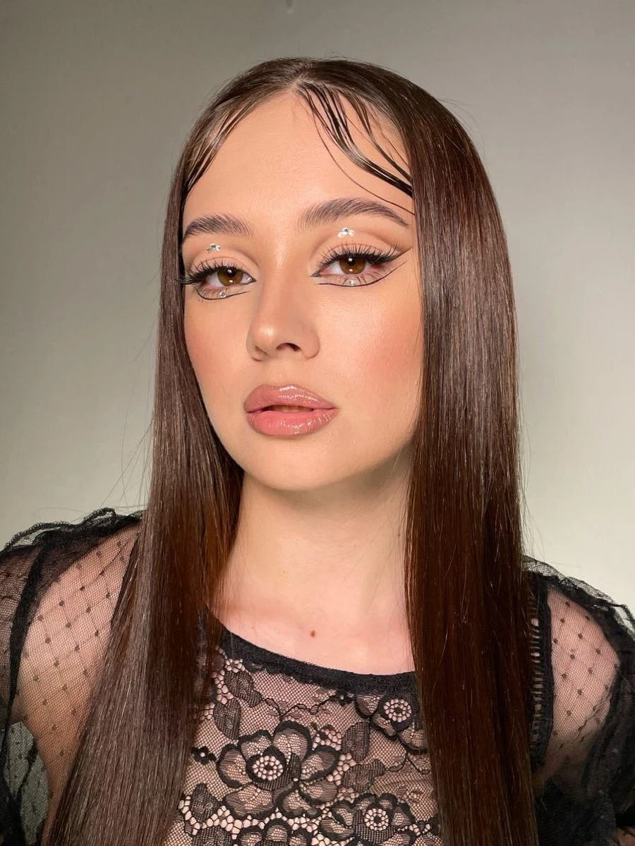 - Точку можно сделать подводкой, кремовыми тенями или даже стразами.