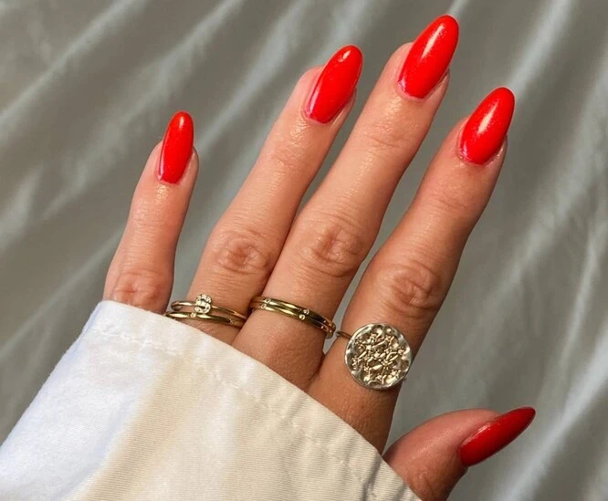 Текстуры — главный тренд сезона. Матовое бархатное покрытие (velvet nails) в насыщенном красном цвете выглядит невероятно роскошно и тактильно приятно. Его можно сделать на всех ногтях или использовать как акцент, сочетая с глянцевым красным лаком. Такой маникюр идеально дополнит образ в вечернем платье и станет вашей самой стильной деталью.
