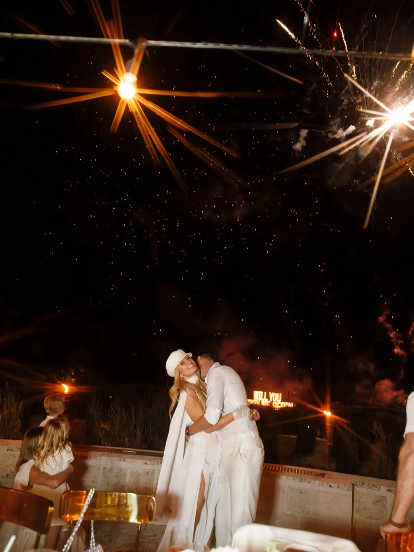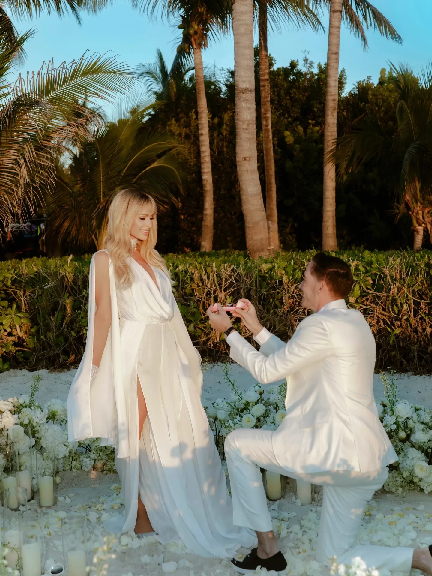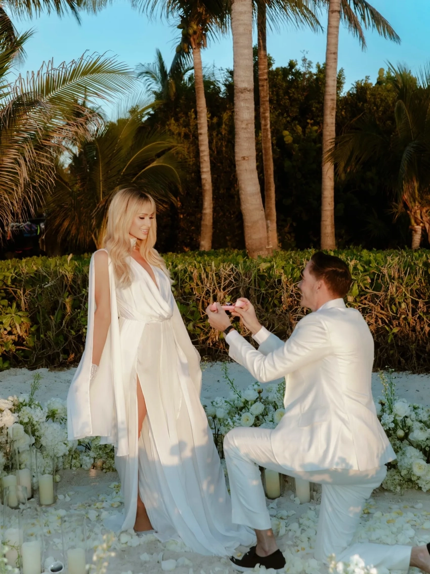 Вторая помолвка пары, которая вместе уже около пяти лет и воспитывает двоих детей, состоялась на островах Тёркс и Кайкос, за несколько дней до дня рождения Хилтон. "Пять лет спустя… И он до сих пор заставляет моё сердце биться. В День святого Валентина мой любимый снова предложил мне руку и сердце, и я снова сказала "да". Но теперь мы не просто муж и жена, мы — мама и папа. Феникс и Лондон видят любовь, которая привела их в этот мир. Обновление наших клятв — это не только празднование пятилетнего совместного пути, но и способ показать детям, что любовь растёт, углубляется и учит выбирать друг друга вновь и вновь", — подписала публикацию Пэрис.