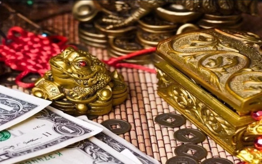 Три китайские монеты на красной ленточке, жаба с монетой во рту, кораблик с золотыми слитками или мандариновое дерево — все это классические талисманы богатства. Главное — не перегружать пространство: одного-двух символов вполне достаточно.