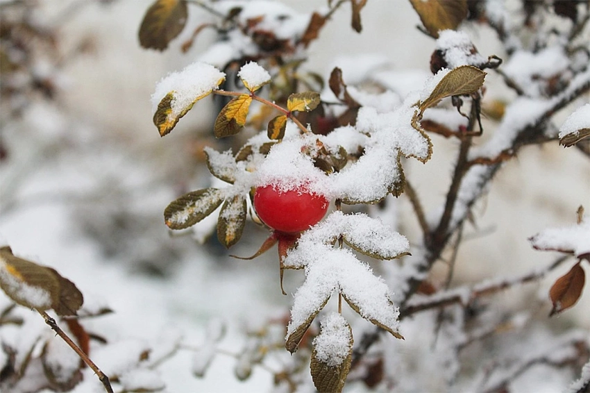 - Когда снег ложится на деревья, но листья на них остаются, снег вскоре растает.