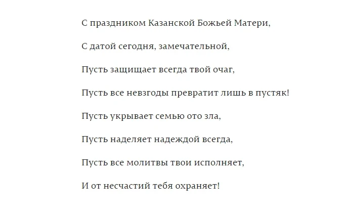 Поздравления в этот день — не просто красивые слова. Они становятся выражением нашей духовной связи, благодарности и стремления к добру. Через добрые пожелания мы желаем друг другу света в душе, крепости веры, как у древних стен святынь, и тепла человеческих сердец. Особое значение приобретают поздравления с изображением Казанской иконы Божией Матери — они словно несут благословение и помогают передать самые искренние чувства.