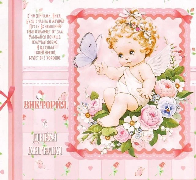 Поздравляю с Днём ангела, Виктория! Всяких тебе земных благ! И пусть ангел-хранитель тебя не оставляет даже в спокойную минуту – и, конечно, в миг горести. Желаю идти правильным путем, принимать свои решения, любить всем сердцем и взаимно, а также никогда не унывать!