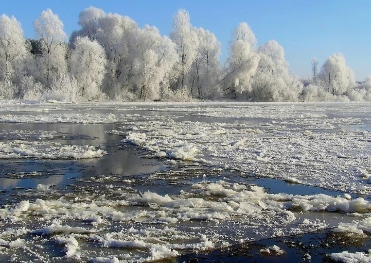 - Лёд на реке, собравшийся в высокие нагромождения, предвещал хороший урожай хлеба в следующем году.