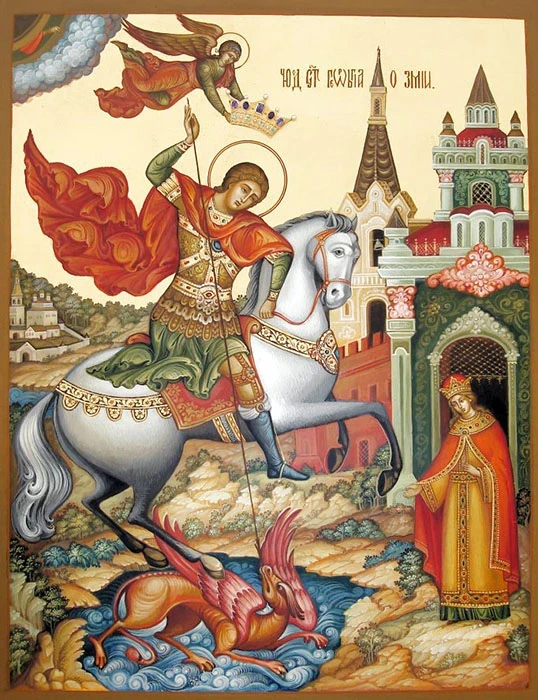 Согласно древнему преданию, в окрестностях Бейрута обитала чудовищная змея, терроризировавшая жителей. Каждый день люди приносили ей жертву, надеясь избежать беды. Но однажды чудовище потребовало самое дорогое — дочь правителя. Узнав об этом, Георгий не остался в стороне: он вступил в неравный бой и поразил змея, освободив город от страха и подарив людям надежду.