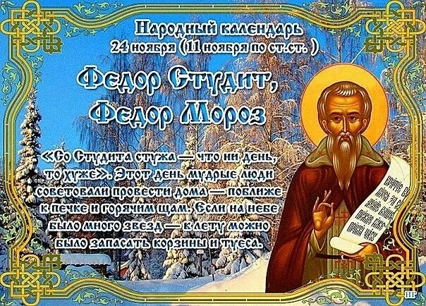 Приметы на Федора Студита, отмечаемого 24 ноября