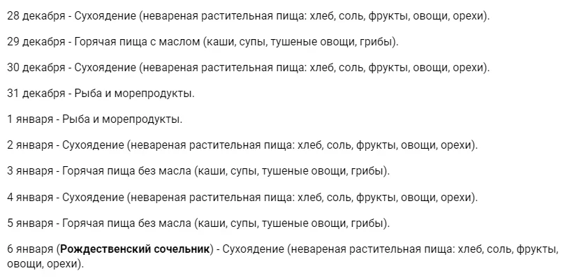 С особой строгостью соблюдение поста проходит с 2 по 6 января. Особенно это касается Сочельника, когда верующие воздерживаются от еды до появления на небе первой звезды. В период с дня памяти Святого Николая до 2 января рыба разрешена только в выходные, что помогает придерживаться более строгих правил.