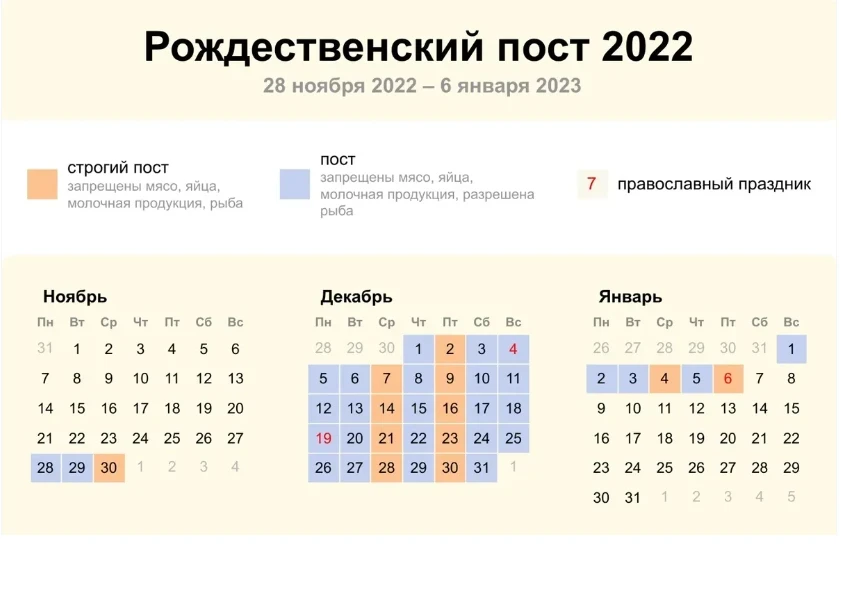 Запреты и особенности Рождественского поста с 28 ноября 2025 года по 6 января 2025, календарь питания, молитвы