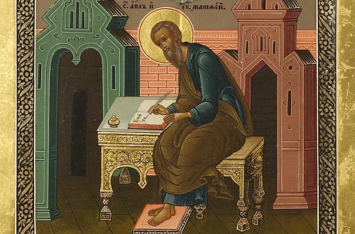 До встречи с Христом Матфей был мытарём — сборщиком налогов. В обществе того времени эту профессию презирали, и люди подобного ремесла считались «грешниками». Однако именно они чаще всего искренне раскаивались и становились горячими последователями учения Христа.