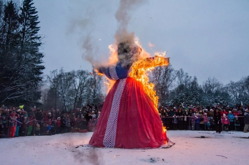 Сжигание чучела Масленицы — главный ритуал, через который провожают зиму и приглашают весну. День заканчивается Прощёным воскресеньем, когда просят прощения и готовятся к Великому посту.