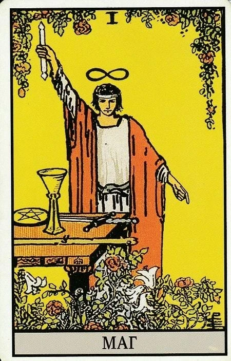 В Таро карта Мага, обозначаемая цифрой I и известная также как Жонглер, Колдун или Маг, изображает мудреца, окружённого различными инструментами, символизирующими его знания, умения и посвящение. Маг обладает глубоким пониманием мира, охватывающим прошлое, настоящее и будущее.