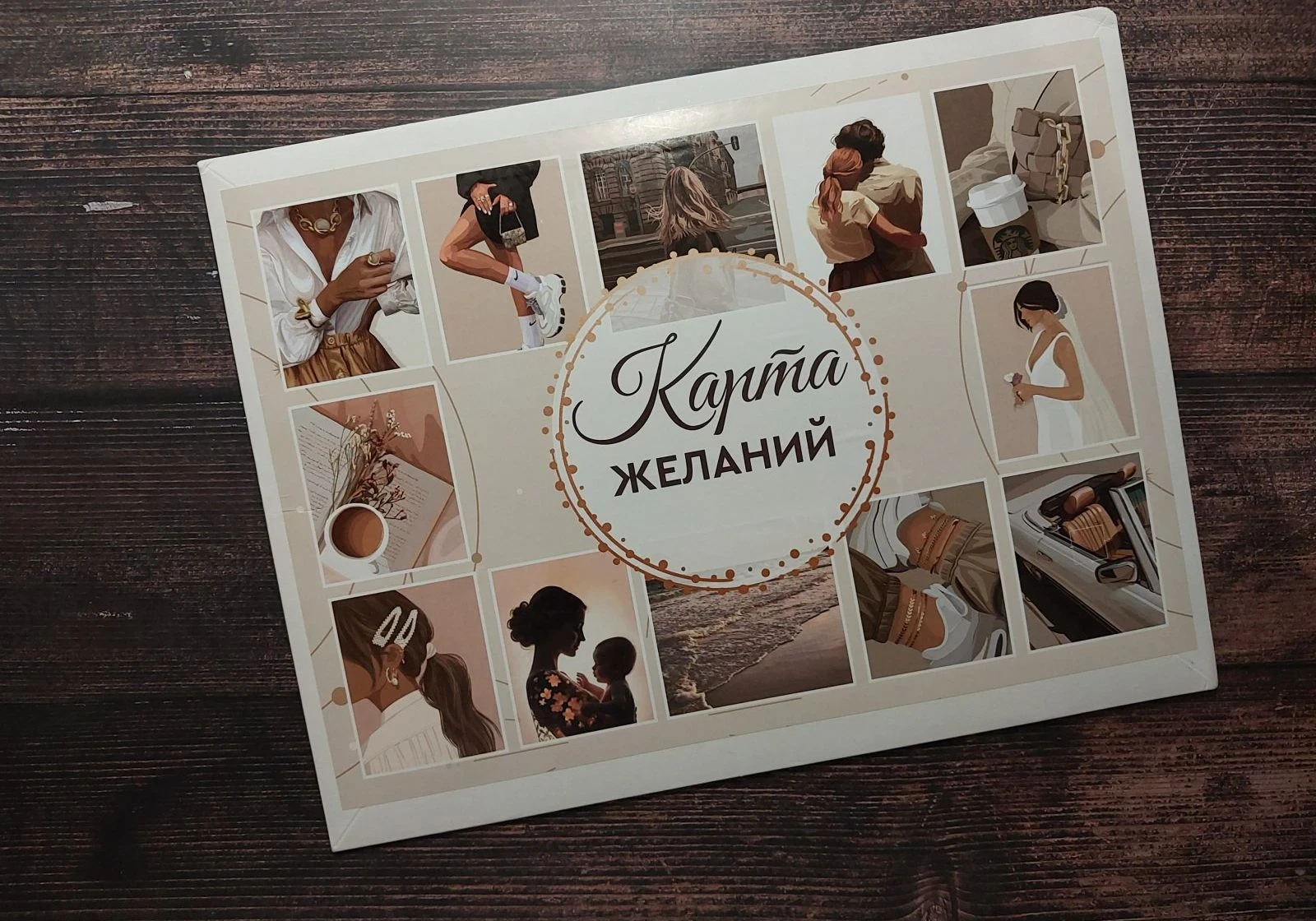 Совет: используйте необычную основу — старую карту, потертый альбомный лист или деревянную панель. Это создаёт ощущение, что ваши желания вписываются в реальный мир, а не остаются фантазией.