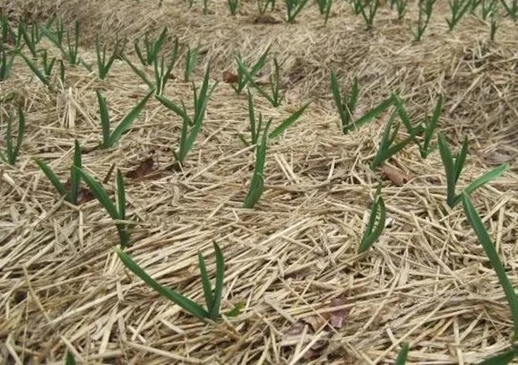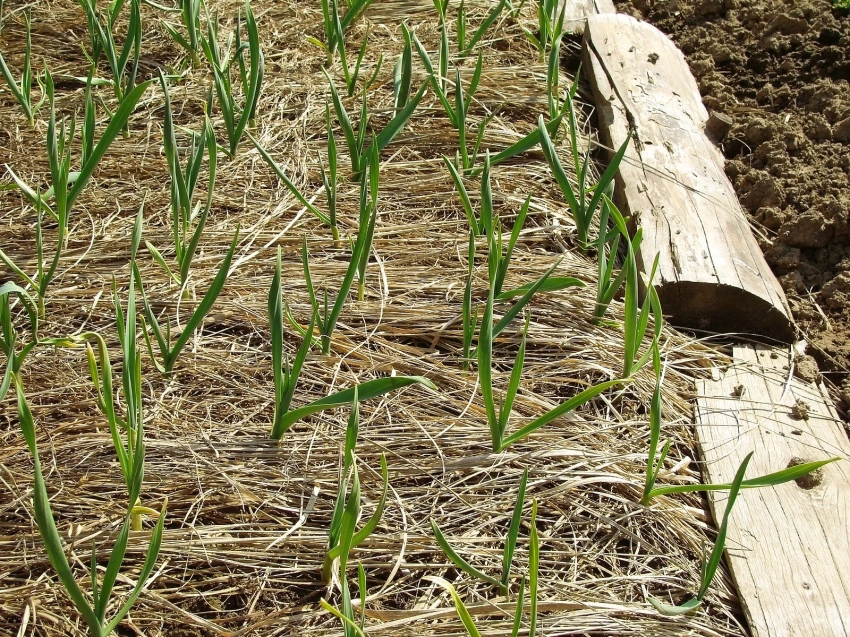Укрытие делают после первых заморозков, когда грунт слегка промёрзнет. Это важно: если замульчировать слишком рано, то чеснок и лук могут «проснуться» и пойти в рост, а после погибнуть от холода.